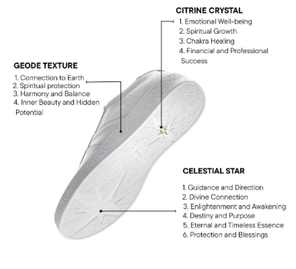 Introducing CTRNE, the world's first sneaker brand with Citrine crystals embedded in the soles. Wherever life takes you, walk towards your goals with a vibrant, uplifting energy.